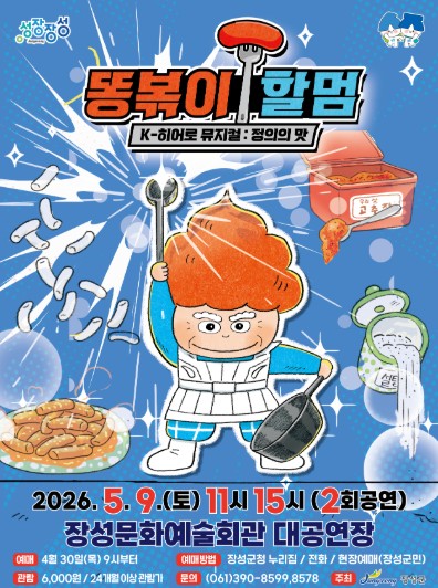 예매는 오는 30일 오전 9시부터 시작되며, 장성군 누리집 또는 문화교육과에 전화해 진행하면 된다.