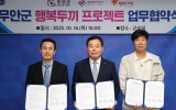 [뉴스채널]전남 무안군은 지난 16일 무안군청 군수실에서 행복얼라이언스 및 행복도시락사회적협동조합과 함께 결식 우려 아동을 위한 '행복두끼 프로젝트' 업무협약을 체결했다. 이날 협약식에는 김산 군수, 조민영 행복얼라이언스 사무국 본부장, 최준 행복도시락사회적협동조합 사무국장이 참석했다. '행복두끼 프로젝트'는 지방정부·기업·사회적기업이 협력해 아동 결식문제를 해결하는 사회공헌 프로그램으로, 관내 결식 우려 아동 20명에게 1년간 매주 1~2회 총 4천 2백만원 상당의 밑반찬 도시락을 제공하여 끼니 해결이 어려운 아이들의 건강한 ...