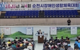 [뉴스채널]순천시는 17일 팔마실내체육관에서 ‘제4회 순천시 장애인생활체육대축전’을 성황리에 개최했다고 밝혔다. 올해로 4회를 맞은 이번 대회는 15개 종목에 선수, 관계자 700여명이 참가해 그동안 갈고닦은 기량을 선보이며 건강한 땀방울을 나눴다. 개회식에는 노관규 시장을 비롯해 주요 내빈과 선수, 가족 등 많은 시민들이 참석해 대회의 시작을 축하하고, 장애인과 비장애인이 함께 어울리는 화합의 장이 되기를 기원했다. 이번 대회는 배드민턴, 보치아, 탁구, 슐런, 한궁 5개의 정식종목을 비롯해, 장애인과 비장애인이 함께 참여하...
