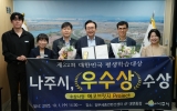 전라남도 박인석 기자2025. 10.02[뉴스채널]전라남도 나주시가 교육부 주관 ‘제22회 대한민국 평생학습대상’에서 환경과 자원순환 학습을 생활 속 실천으로 확산한 성과를 전국적으로 인정받았다. 나주시는 지난 1일 정부세종컨벤션센터에서 열린 ‘제22회 대한민국 평생학습대상’ 시상식에서 ‘우수상’을 수상했다고 2일 밝혔다. 이번에 수상한 ‘에코브릿지 Project’는 경력단절여성, 청소년, 장애인, 어르신 등 다양한 계층을 대상으로 재활용, 분리배출 교육과 미디어아트 융합 체험을 운영해 시민들의 자발적 참여와 생활 속 실천을 끌어낸 혁신적 평생학습 프로그램으로 평가받...