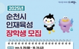 순천 박인석 기자2025. 09.29[뉴스채널]순천시인재육성장학회는 2001년 설립 이래 지금까지 총 3,943명에게 36억 원의 장학금을 지급하며, 순천시 인재 육성과 지역사회 발전에 크게 기여해왔다. 이번 장학생 모집은 초·중·고·대학생과 시민을 포함하여 총 605명을 선발하며, 695백만 원의 장학금을 지급할 예정이다. 모집 분야는 성적우수 장학금(고·대), 특기자 장학금(초·중·고·대), 다자녀 장학금(중·고·대), 청향 장학금(초·중·고·대), 희망드림 장학금(초·중·고·대), 국제교류 장학금(대), K-디즈니순천 장학금(고·대), 플러스알파 장학금(시...