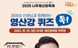 나주 박인석 기자2025. 09.26[뉴스채널]전라남도 나주시가 ‘2025 나주영산강축제’에서 한국사 대표 강사 최태성 선생님과 함께하는 특별 프로그램을 선보인다. 나주시는 오는 10월 10일 오후 2시에 나주영산강축제의 중심 무대인 영산강정원 주무대에서 한국사 강사이자 방송인으로 널리 알려진 최태성 선생님과 함께하는 특별 프로그램 ‘영산강 퀴즈 톡!’을 개최한다고 26일 밝혔다. ‘영산강 퀴즈 톡!’은 영산강과 나주의 역사를 주제로 진행되는 토크쇼와 현장 퀴즈 이벤트가 결합한 참여형 프로그램으로 영산강과 나주의 역사적 가치를 쉽고 재미있게 다뤄 남녀노소 누구나 ...