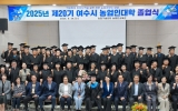 여수 박인석 기자2025. 09.25[뉴스채널]여수시는 지난 24일 농업기술센터 농업인교육관에서 ‘2025년 농업인대학 졸업식’을 열고 60명의 졸업생을 배출했다고 밝혔다. 이날 졸업식에는 여수시 농업인대학장인 정기명 시장을 비롯해 백인숙 시의회 의장, 시의원, 농업 유관기관장, 농업인단체장 등 80여 명이 참석해 졸업생들을 축하했다. ‘여수시 농업인대학’은 2006년 설립 이래 지역 농업의 변화와 트렌드에 맞춘 교육과정을 운영하며 농업 인재를 육성해 왔다. 지난 20년간 총 39개 교육과정을 운영했으며 올해 졸업생 60명을 포함해 지금까지 1,282명이 졸업...