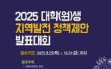 전라북도도 박인석 기자2025. 09.25[뉴스채널] 전북특별자치도평생교육장학진흥원은 지역 발전에 대한 청년들의 관심과 참여를 높이기 위해 '2025년 대학(원)생 지역발전 정책제안 발표대회'를 개최한다고 24일 밝혔다. 이번 대회의 공모 주제는 △전북인재양성 △청년기회도시 조성 △학령인구 감소 및 지역소멸 대응 방안 등으로, 참가자는 이 중 한 가지를 선택해 정책 아이디어를 제안하면 된다. 참가는 개인 또는 2인 이내 팀 단위로 가능하며, 신청서는 진흥원 홈페이지 참고하여 신청하면 되며, 신청기간은 9월 25일부터 10월 31일 18시까지 이다. 심사는 1차 ...