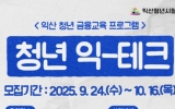 [뉴스채널]익산시가 청년들의 자산 형성과 경제적 자립을 지원한다. 익산시는 오는 10월 21일부터 12월 16일까지 청년 맞춤형 금융교육 '청년 익테크'를 진행한다고 23일 밝혔다. 이번 프로그램 '익테크'는 익산과 재테크를 결합해 만든 명칭으로, 익산 청년들이 현명하게 돈을 관리하고 미래를 설계할 수 있도록 돕는다는 의미를 담고 있다. 교육 과정은 실생활에 밀접한 금융 지식을 중심으로 △월급 관리 기초와 세금 이해 △금융 상품과 경제 시장의 흐름 △노후 준비와 연금 체계 등 3개 강좌로 구성됐다. 교육은 참여자의 수...