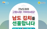 전라남도 박인석 기자2025. 09.17[뉴스채널]전라남도가 추석 명절을 맞아 지역에서 생산되는 농산물의 소비를 촉진하기 위해 10월 12일까지 고향사랑기부제 특별 이벤트를 진행한다. 전남도청에 10만 원 이상 기부하고 답례품 후기를 작성한 선착순 500명에게 기존 답례품 외에 시니어클럽 어르신들이 직접 담근 배추김치와 파김치 중 1가지 품목(1kg)을 추가 답례품으로 제공한다. 이벤트 참여는 전남도청에 10만 원 이상 기부한 후 고향사랑e음에서 답례품을 주문·수령한 다음 후기를 작성하면 자동으로 신청된다. 강경문 고향사랑과장은 “이번 이벤트는 고향을 생각하는...