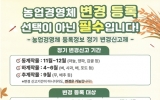 전주 박인석 기자2025. 09.17[뉴스채널] 국립농산물품질관리원전남지원영광사무소은 농업정책 기초자료로 활용되는 농업경영체에 등록된 품목정보의 정확도를 높이기 위해 9월부터 10월까지 무·배추 등 추계작물 정기변경 신고제*를 본격적으로 운영한다. 이번 정기 변경신고 기간에는 무․배추 등 추계작물의 경영체 등록정보 변경 사항(품목ㆍ농지 추가 또는 삭제 등)이 있으면, 영광농관원 사무소에 전화·방문하거나 콜센터(1644- 8778), 온라인서비스(농업e지)를 통해 변경 신청을 하면 된다. 추계작물 변경신고 기간 이후에는 무‧배추 재배 농업인을 대상으로 표본...