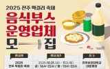 전주 박인석 기자2025. 09.15[뉴스채널]맛의 도시 전주시가 ‘전주페스타 2025’의 일환으로 개최되는 ‘전주막걸리축제’를 함께 준비할 음식부스 참여업체를 모집한다. 시는 오는 10월 31일과 11월 1일 이틀간 전주비전대학교 대운동장에서 개최되는 ‘2025 전주막걸리축제’에서 음식부스를 운영할 참여업체를 공개 모집한다고 15일 밝혔다. 모집 대상은 막걸리 안주 판매 업소와 전주만의 다양한 음식 판매 업소 등 총 25개 업체다. 참여를 희망하는 업체는 신청서를 작성해 15일부터 오는 19일까지 전자우편으로 접수하면 된다. 기타 자세한 사항은 전주시 누리집 ...