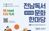 전라남도 박인석 기자2025. 09.10[뉴스채널]전라남도교육청은 9월 12일부터 27일까지 3주간, 전남 지역 공공도서관과 교육문화회관, 평생교육관 등 22개 기관에서 ‘제10회 전남독서문화한마당’을 개최한다. ‘RE: read, 다시 독서’를 주제로 한 이번 한마당 행사에는 온 가족이 즐길 수 있는 공연과 인문학 강연, 재미난 체험 프로그램이 풍성하다. 축제의 문은 9월 12일 목포도서관 평화광장에서 펼쳐지는 김창완 밴드 공연으로 힘차게 열린다. 다음 날인 13일에는 어린이 버블쇼와 샌드아트 체험이 마련돼 가족 단위 관객의 발길을 붙든다. 고흥평생교육관...