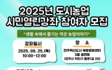 전주 박인석 기자2025. 09.10[뉴스채널] 전주시농업기술센터는 오는 25일 오전 10시, 전주혁신도시 복합문화센터 공연장에서 ‘2025년 도시농업 시민열린강좌’를 개최한다. 약 두 시간 동안 진행되는 이번 강좌는 시민들이 도시 속에서 손쉽게 접할 수 있는 도시농업을 배우고, 이를 통해 건강한 생활과 이웃 간 소통을 확대할 수 있도록 돕기 위해 기획됐다. 이번 시민열린강좌에는 최정란 전북대학교 원예학과 겸임교수가 강사로 초청돼 ‘생활 속에서 즐기는 작은 농업이야기’를 주제로 시민 눈높이에 맞는 생활 속 도시농업 실천법을 공유할 예정이다. 주요 내용은 △...