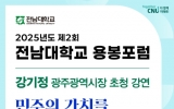 [뉴스채널]지역과 대학이 함께 성장할 길을 모색하는 열린 강연 시리즈 ‘2025년 제2회 전남대 용봉포럼’이 오는 9월 16일 오후 2시, 대학본부 국제회의동 2층 용봉홀에서 열린다. 이번 포럼에는 강기정 광주시장이 연사로 나서 ‘민주의 가치를 성장의 기회로’를 주제로, 민주주의의 가치가 지역 발전과 미래 성장으로 이어지는 길을 제시한다. 강 시장은 국회의원과 광주시장을 역임하며 지역균형발전, 혁신성장, 시민참여 민주주의를 실현해 온 대표적 지역 리더다. 이번 강연에서는 광주의 역사와 민주 정신을 오늘의 성장 동력으로 삼아야...