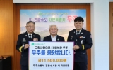 무주 박인석 기자2025. 09.01[뉴스채널]무주소방서가 지난 1일 무주군에 고향사랑기부금 1,150만 원을 기탁했다. 기부금은 무주소방서 직원 110명이 뜻을 모은 것으로 지난해(750만 원)에 이어 2년 연속 이어지고 있다는 점에서도 의미를 더하고 있다. 김장수 서장은 “무주를 아끼고 지키겠다는 무주소방서 직원들 모두의 마음을 담았다”라며 “작은 정성이지만 큰 사랑이 돼서 무주발전에 도움이 됐으면 하는 바람”이라고 전했다. 또한 “365일 각종 재해와 재난으로부터 무주군민의 생명을 보호하는 데 최선을 다하고 있다”라며 “군민에게 언제나 따뜻하고 믿음...