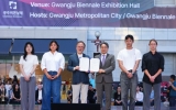 익산 박인석 기자2025. 08.30[뉴스채널]강기정 광주광역시장이 29일 오후 북구 광주비엔날레 광장 특설무대에서 열린 '2025 광주디자인비엔날레' 개막식에 참석해 국내·외 학생들로부터 광주포용디자인 매니페스토 선언서를 전달 받았다.