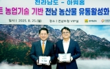 전주 박인석 기자2025. 08.25[뉴스채널]전라남도와 한화 아워홈은 25일 도청에서 ‘스마트 재배관리 솔루션’을 적용한 농산물의 안정적 생산과 유통 활성화를 위한 업무협약(MOU)을 했다. 협약식에는 김영록 전남도지사, 김태원 한화 아워홈 대표이사, 김행란 전남농업기술원장, 박현식 전라남도 농축산식품국장 등이 참석했다. 주요 내용은 ▲스마트 재배관리 솔루션 도입과 기술 지원을 통한 농산물 안정 생산 ▲대형 유통업체와의 협력을 통한 판로 확대 ▲산지 가공시설과 맞춤형 소포장 기반 구축 등이다. 협약은 전남도에서 개발한 노지 스마트팜 기술을 활용해 기후변화와 이...