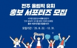 전라북도도 박인석 기자2025. 08.22[뉴스채널]전북특별자치도는 국민과 함께 전주 올림픽 유치의 꿈을 실현하기 위해 ‘전주 올림픽 유치 홍보 서포터즈’를 모집한다고 밝혔다. 모집 기간은 오는 8월 22일부터 12월 31일까지이며, 전주 올림픽 유치에 관심 있는 국민 누구나 신청할 수 있다. 신청은 전북특별자치도 누리집에서 본인 인증 후 가능하다. 홍보 서포터즈는 전주 올림픽 관련 소식을 개인 SNS, 유튜브 등 다양한 온라인 채널을 통해 자유로운 형식으로 홍보하게 된다. 또한 전북특별자치도 공식 채널의 올림픽 게시물을 공유·좋아요하는 방식으로 확산에 동참하고, 챌린...