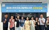 전라북도도 박인석 기자2025. 08.21[뉴스채널]전주시는 21일 전주시립도서관 꽃심에서 전주국제그림책도서전 조직위원 등이 참석한 가운데 ‘제4회 전주국제그림책도서전’ 성과보고회를 가졌다. 이번 보고회는 지난 5월 29일부터 6월 29일까지 한 달간 팔복예술공장과 완산도서관 일원에서 진행된 제4회 전주국제그림책도서전의 성과를 공유하고, 향후 발전 방향을 모색하기 위해 마련됐다. 이날 보고회에서 참석자들은 올해 도서전에 대해 백희나 작가와 사라 룬드베리 작가 등 국내외 유명 그림책 작가들의 참여를 확대하고, 아스트리드 린드그렌 추모상(ALMA) 전시와 디픽투스 그림책 ...