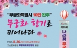 완주 박인석 기자2025. 08.20[뉴스채널]완주군이 광복 80주년을 기념해 ‘광복 80년, 무궁화특별시 10만 완주, 무궁화 향기로 피어나다’를 슬로건으로 한 제35회 나라꽃 무궁화 완주축제를 오는 30일 고산문화공원(무궁화테마식물원 일원)에서 개최한다. 올해 축제는 ‘무궁화꽃이 피었습니다’, ‘무궁화 황금반지를 찾아라’ 등 대표 이벤트와 식전공연을 비롯해 다양한 체험과 공연 프로그램으로 꾸며진다. 아름다운 무궁화를 가정에서도 감상할 수 있도록 무궁화 화분 나눠주기, 무궁화를 느낄 수 있는 무궁화 그림대회, 무궁화 서예대회, 무궁화 체험프로그램, 전통놀이, 축...