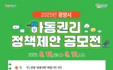 광양 박인석 기자2025. 08.19[뉴스채널]광양시는 8월 18일부터 9월 12일까지 '2025년 아동권리 정책제안 공모전'을 개최한다고 밝혔다. 이번 공모전은 아동이 자신의 권리에 대해 고민하고, 일상 속 문제를 바탕으로 정책을 제안함으로써 지역사회의 주체로 참여할 기회를 제공하고자 마련됐다. 공모 주제는 아동의 권리를 보장할 수 있는 정책 전반에 대한 자율 주제이며, 1인 1건 제출이 가능하다. 아동은 유엔아동권리협약에서 보장하는 4대 권리(생존권, 보호권, 발달권, 참여권)를 바탕으로 자유롭게 아이디어를 제안할 수 있다. 시는 접수된 제안 중 총 6건...
