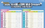 전라남도 박인석 기자2025. 08.19[뉴스채널]전라남도교육청이 2026학년도 대학입시 수시모집 원서 접수를 앞두고 학생·학부모가 과학적이고 객관적인 자료를 바탕으로 지원 전략을 세울 수 있도록 ‘2026. 대입일정 정리해 DREAM’과 ‘2026학년도 수시로 대학 보내 DREAM’을 제작·보급했다. ‘2026. 대입일정 정리해 DREAM’은 원서 접수, 합격자 발표, 대학별 전형 일정 등 주요 대입 일정을 한눈에 볼 수 있도록 정리한 것이며, ‘2026학년도 수시로 대학 보내 DREAM’은 서울 주요 대학, 의약학계열, 전남대 교과전형의 합격 가능 등급 및 교과...