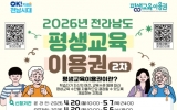 함평 박인석 기자2026. 04.20[AI 호남뉴스] 순천시는 시민의 평생학습 기회 확대와 교육격차 해소를 위해 ‘2026년 전라남도 평생교육이용권’ 2차 신청 접수를 20일부터 시작한다고 밝혔다. 해당 사업은 경제적 사정으로 학습 참여가 어려운 시민에게 교육비를 지원하는 제도로, 선정 시 1인당 연간 최대 35만 원의 평생교육이용권을 지원받을 수 있다. 평생교육이용권 누리집을 통한 온라인 신청은 5월 7일까지 가능하며, 순천시 평생교육과 방문 신청은 5월 6일까지 접수한다. 신청 대상은 ▲일반(19세 이상) ▲AI·디지털(30세 이상) ▲노인(65세 이상)으로...