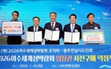 군산 박인석 기자2026. 01.21[AI 호남뉴스](재)2026여수세계섬박람회조직위원회는 지난 20일 서울 종로구 HW컨벤션센터에서 광주전남시도민회와 ‘2026여수세계섬박람회 입장권 5,000매 구매약정’을 체결했다고 밝혔다. 이날 약정식은 조직위원장 김영록 전남도지사와 광주전남시도민회 양광용 회장을 비롯해 향우임원 600여 명이 참석한 가운데 진행됐다. 이번 구매약정은 지난해 체결한 조직위와 광주전남시도민회 간 업무협약에 따른 결실로, 협약 이후 실제 참여와 실천으로 이어진 대규모 구매 사례다. 광주전남시도민회는 1955년 출범한 국내 최대 규모의 향우단체로...