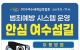 여수 박인석 기자2025. 08.04[뉴스채널]여수시가 도서지역의 치안 사각지대를 해소하기 위해 전국 최초로 범죄예방시스템을 구축하고 8월부터 남면, 화정면, 삼산면 등 도서지역에서 운영을 시작한다. 이번에 도입된 범죄예방시스템은 시시티브이(CCTV) 설치가 어려운 도서지역의 특수한 여건을 보완하기 위한 것으로, 위급상황 시 개인의 스마트폰을 이동형 시시티브이(CCTV)처럼 활용할 수 있는 기능이다. 시스템은 여수시 CCTV통합관제센터와 실시간 연계돼 상황 발생 시 신속한 대응이 가능하다. 사용자가 스마트폰 화면에서 ‘영상전송’을 누르면 현장 영상이 관제센터로...