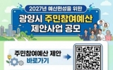 광양 박인석 기자2026. 04.02[AI 호남뉴스]광양시는 시민이 예산 편성 과정에 직접 참여할 수 있도록 6월 30일까지 ‘2027년 예산 반영 주민참여예산 제안사업’을 집중 공모한다고 밝혔다. 이번 공모는 예산 과정에 다양한 계층의 참여를 확대하고, 시민이 일상에서 느끼는 불편 사항과 지역 발전을 위한 아이디어를 시정에 반영하기 위해 마련됐다. 제안 분야는 ▲청년 희망 및 중장년 행복 기반 조성 ▲여성 안전 및 어르신 건강 도시 지향 사업 ▲안전하고 쾌적한 도시 조성 등 시정 전반이다. 다만 특정 단체나 개인 지원을 목적으로 하거나 이미 시행 중인 사업,...