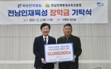 전라남도 박인석 기자2025. 12.02[AI 호남뉴스]전라남도는 고광일 목포한국병원 원장은 2일 전남인재평생교육진흥원에 전남인재육성 장학금 1천만 원을 기탁했다고 밝혔다. 전남인재평생교육진흥원 회의실에서 열린 기탁식에는 고광일 원장, 범희승 전남인재평생교육진흥원장 등이 참석했다. 1988년 개설된 목포한국병원은 20개 진료과와 600병상을 갖춘 전남 서부권역 대표 종합병원이다. 2025년 보건복지부 ‘포괄 2차 종합병원 지원사업’에 선정되며 지역 필수의료를 책임지는 핵심 의료기관으로 자리매김했다. 특히 지난 2021년부터 지역 인재 육성을 위해 2천만 원의 장...