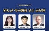 영암 박인석 기자2025. 12.31[AI 호남뉴스]완도군은 지난 24일 적극행정위원회를 개최하고 ‘2025년도 하반기 적극 행정 우수 공무원’ 4명과 협업팀 2팀을 선정했다. 적극 행정 우수 공무원에는 기획예산실 이혜인 주무관, 행정지원과 황철웅 팀장, 세무회계과 문병민 팀장, 금일읍 안아란 주무관, 협업팀은 서무팀과 사회재난팀이 이름을 올렸다. 적극 행정 우수 공무원 선정은 총 9개 적극 행정 사례 중 예선 심사를 거쳐 본선에 오른 7개(개인 6, 협업팀 1) 사례에 대해 ‘소통 24’의 전 국민 온라인 투표와 발표를 거쳐 최종 선발됐다. 기획예산실 이혜인 ...