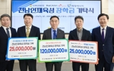 전라남도 박인석 기자2025. 12.30[AI 호남뉴스]전라남도는 30일 인재육성 장학금으로 (재)녹색에너지연구원이 1억 2천만 원, 전남도시가스(주)가 2천500만원, ㈜해양에너지가 2천500만 원을 전남인재평생교육진흥원에 기탁했다고 밝혔다. 이날 인재평생교육진흥원 배움마루에서 열린 기탁식에는 백경동 전남도 에너지정책과장, 황규철 녹색에너지연구원장, 구자성 전남도시가스 대표이사, 정회 해양에너지 대표이사, 범희승 전남인재평생교육진흥원장 등이 참석했다. 녹색에너지연구원은 태양광·풍력·수소 등 신재생에너지 분야의 원천기술과 및 실용화 기술 연구개발을 수행하며, 해상풍력...