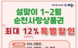 광양 박인석 기자2025. 12.30[AI 호남뉴스]순천시가 새해와 설 명절을 맞아 2026년 1월부터 2월까지 두 달간 순천사랑상품권 할인 행사를 추진해 지역 소비 촉진에 나선다고 밝혔다. 지류상품권은 구매 시 10% 선할인이 적용되며, 모바일 순천사랑상품권은 10% 선할인에 더해 사용 금액의 2%를 후캐시백으로 제공해 최대 12%의 혜택을 받을 수 있다. 시는 이러한 할인 구조를 통해 명절을 앞둔 소비 수요를 지역 내 가맹점으로 집중 유도하고, 상품권 구매뿐 아니라 실제 사용까지 자연스럽게 이어지도록 설계했다고 설명했다. 특히 모바일 상품권의 경우 사용 후...