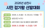 순천 박인석 기자2026. 03.23[AI 호남뉴스] 순천시는 시민들의 일상 속 걷기 실천을 유도하고 건강생활 습관 형성을 위해 ‘2026년 시민 걷기왕 선발대회’를 운영한다고 밝혔다. 이번 걷기왕 선발대회는 사전·사후 인바디 검사를 포함해 3월 23일부터 10월 28일까지 약 8개월간 진행되며, 스마트폰 걷기 앱 ‘워크온’ 순천시 커뮤니티 가입 시민을 대상으로 참여 신청을 받는다. 참여를 희망하는 시민은 오는 4월 3일까지 순천시보건소 2층 운동영양실을 방문해 사전 인바디 검사를 받은 후 워크온 가입을 확인하면 된다. 참가자(사전 인바디 검사자)는 4월 6일...