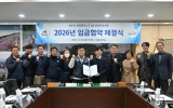 진안 박인석 기자2025. 12.26[AI 호남뉴스]장수군은 군청 2층 회의실에서 전국공공운수노조 전국자치단체공무직본부 장수군지부(지부장 윤동수, 이하 ‘장수군 공무직지부’)와 2025년 임금협약을 체결했다고 26일 밝혔다. 이날 협약식에는 최훈식 장수군수를 비롯한 노사 양측 교섭위원 11명이 참석했으며 협약서 서명을 통해 장수군 공무직지부와 2025년·2026년 임금협약을 확정했다. 이번 협약은 올해 7월부터 노사 간 상견례, 실무교섭 등을 거쳐 추진됐으며 상호 신뢰와 존중을 바탕으로 합리적인 합의를 도출한 점에서 의미가 크다. 주요 협약 내용은 기말상...