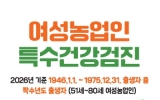 담양 박인석 기자2026. 03.13[AI 호남뉴스]옹진군은 올해 처음으로 여성농업인의 건강권 보호를 위한'여성농업인 특수건강검진사업'을 본격 시행한다고 밝혔다. 이번 사업은 농작업으로 인해 근골격계 질환 등 직업성 질환에 취약한 여성농업인을 대상으로 건강검진 및 예방 상담을 지원하는 사업으로 여성농업인의 삶의 질 향상과 안정적인 영농 활동을 지원하기 위해 추진된다. 지원 대상은 옹진군에 거주하며 농업경영체에 등록된 짝수년도 출생의 51세부터 80세까지 여성농업인으로, 올해는 총 60명을 대상으로 실시되며, 검진 비용은 1인당 22만 원이며, 이 중 19만8천 ...