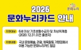 [AI 호남뉴스]광주문화재단(대표이사 직무대행 전은옥)은 2월 2일부터 6세 이상 기초생활수급자 및 차상위계층을 대상으로 2026년 문화누리카드 발급과 사용이 가능하다고 밝혔다. 2026년 문화누리카드 지원금은 지난해 대비 1만 원 인상된 1인당 15만 원이며, 청소년기(2008~2013년생)와 준고령기(1962~1966년생) 대상자에게는 1만 원이 추가 지원된다. 카드 발급 기간은 2월 2일부터 11월 30일까지로, 광주광역시 96개 동 행정복지센터에 방문하거나, 문화누리카드 누리집과 모바일 앱, 고객센터 ARS를 통해 ...