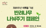 해남 박인석 기자2026. 03.11[AI 호남뉴스]광주 동구는 제81회 식목일을 앞두고 주민들이 직접 나무를 가꾸며 생활 속 환경보호를 실천할 수 있도록 오는 12일 5·18민주광장에서 ‘반려나무 나눠주기’ 캠페인을 개최한다고 밝혔다. 동구는 이날 오전 11시부터 서향나무(천리향) 1,000주를 1인 1그루씩 선착순으로 무료 분양한다. 구는 이번 행사를 통해 ‘1인 1나무 가꾸기’를 적극 홍보함으로써, 일상 속에서 기후위기 극복을 실천하고 녹색도시 조성에 기여할 것으로 기대하고 있다. 주민들이 가정과 생활공간에서 직접 나무를 돌보며 미세먼지 저감과 도시 환경 개선...
