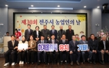 남원 박인석 기자2025. 11.11[뉴스채널] ‘제30회 전주시 농업인의 날 기념행사’가 11일 전주지역 농업인단체 회원 등 400여 명이 참석한 가운데 전주시 아름다운컨벤션웨딩에서 열렸다. 이날 기념행사는 기념식, 농업인 화합 한마당 등의 순으로 진행됐다. 먼저 1부 기념식에서는 지난 1년간 농업인의 권익 향상과 농업 발전에 이바지한 유공자 14명에게 각각 전주시장 표창(7명)과 전주시의장 표창(7명)이 수여됐다. 또한 농업인단체 활성화에 기여한 7명의 유공농업인은 전주시농업인단체연합회장 표창패를 받았고, 전주시농업인단체연합회 발전에 힘써온 전임 회장에...