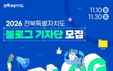 전라북도도 박인석 기자2025. 11.10[뉴스채널]전북특별자치도는 도 공식 블로그 ‘전북의 재발견’에서 활동할 2026년 블로그 기자단을 11월 10일부터 30일까지 모집한다. 기자단은 전북의 일상과 여행지, 문화, 생활 정책 등 다양한 지역 소식을 콘텐츠로 제작해 도민과 블로그 방문객에게 소개하는 온라인 홍보 역할을 맡게 된다. 모집 인원은 총 30명으로, 전북에 관심 있는 누구나 지원 가능하다. 합격자는 다음 달 10일 발표되며, 선발된 기자단은 2026년 1월부터 12월까지 1년간 활동하게 된다. 활동 기간 동안 기자단은 월간 온라인 기획회의와 기획 취재 등을...