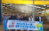 화순 박인석 기자2025. 11.10[뉴스채널]장수군은 농촌진흥청 축산 신기술 시범사업 일환으로 번암면 유정리 태화농장에서 축산농가와 축산 전문가, 관계 공무원 등 10여 명이 참석한 가운데 ‘한우 번식우 기반 확대 시범사업 성과공유 평가회’를 개최했다고 10일 밝혔다. 이번 시범사업은 지난 3월부터 오는 12월까지 총 6천만 원의 예산을 투입해 관내 3개 한우농가에 한우의 번식 효율과 송아지 생존율 향상을 위한 농촌진흥청의 최신 축산 기술을 현장에 보급하기 위해 추진됐다. 주요 사업 내용은 코팅 베타카로틴 번식첨가제 급여를 통한 수태율 개선과 원적외선을 이용...