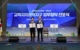 진도 박인석 기자2025. 11.06[뉴스채널]진도군은 지난 11월 5일에 전라남도교육청과 ‘전라남도 교육자치협력지구 운영 업무협약’을 체결했다고 밝혔다. 이번 협약식은 진도교육지원청에서 주최하는 ‘2025 보배섬 진도 글로컬 교육축전’이 열리고 있는 진도실내체육관에서 진행됐으며, 김희수 진도군수, 김대중 전라남도교육감, 박금례 진도군의회의장과 군의원, 전라남도교육청과 진도교육지원청 관계자, 학부모, 학생들이 참석했다. 이번 협약은 지역사회와 학교가 함께 성장하는 지속 가능한 교육생태계를 구축하는 것을 목표로 한다. 업무협약의 주요 내용은 ▲교육 발전과 지역교육...