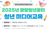 광양 박인석 기자2025. 11.06[뉴스채널]광양청년꿈터가 ‘찾아가는 청년 미디어교육’에 참여할 수강생을 선착순으로 모집한다. ‘찾아가는 청년 미디어교육’은 청년들의 미디어 활용 역량 강화를 목표로, 광양청년꿈터와 광주시청자미디어센터가 협력해 추진하는 사업이다. 시청자미디어재단 광주시청자미디어센터는 국민 누구나 다양한 미디어 혜택을 누릴 수 있도록 지원하는 미디어 전문 기관으로, 이번 협력을 통해 지역 청년들에게 전문적이고 접근성 높은 교육을 무상으로 제공할 계획이다. 교육 과정은 ▲‘팔로우를 부르는 숏폼 만들기’(2차시)와 ▲‘이모티콘 제작 첫걸음’(1차시)...