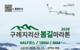 [AI 호남뉴스]전남 구례군은 아름다운 자연환경을 배경으로 한 ‘제1회 구례 지리산봄길 마라톤대회’가 오는 5월 2일 구례공설운동장에서 개최된다고 밝혔다. 이번 대회는 오마이뉴스 광주전라본부와 구례군육상연맹이 주최·주관하고 구례군이 후원하는 행사로 마라톤 종목 저변 확대와 구례 지역 홍보를 위해 마련됐다. 대회종목은 하프코스(21.0975km), 10km, 5km 총 3개 부문이다. 참가자들은 오전 8시 30분부터 순차적으로 출발해 지리산의 봄 풍경을 따라 달리게 된다. 참가 신청은 2월 23일부터 공식 홈페이지를 통해 접수를...
