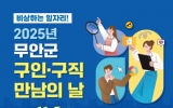 무안 박인석 기자2025. 10.30[뉴스채널]전남 무안군은 오는 11월 7일 목포대학교 남악캠퍼스 글로컬스타트업센터 컨벤션홀에서 지역 기업의 인력난 해소와 구직자의 취업확대를 위해 『2025년 무안군 구인·구직 만남의 날』을 개최한다. 이번 행사는 전남 서남권 15개 기업이 50여 명을 채용할 예정으로 참여 기업은 제조·서비스·복지 등 다양한 업종으로 구성돼 기업설명회와 함께 직접 현장면접을 진행한다. 또한 행사장에서는 전남중소기업일자리경제진흥원, 고용복지플러스센터 등 유관기관이 참여해 맞춤형 취업상담과 이력서 컨설팅을 진행하며 증명사진 무료 촬영, 이력서 출력...
