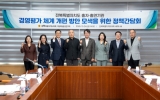 전라북도도 박인석 기자2025. 10.28[뉴스채널]전북특별자치도의회 지방재정분권연구회 정종복 대표위원(더불어민주당, 전주3)은 24일 전북특별자치도의회 세미나실에서 “전북특별자치도 출자·출연기관 경영평가 체계 혁신을 위한 정책간담회”를 개최했다. 대표위원인 정종복 의원이 간담회의 좌장을 맡고, 군산대 이국용 교수, 군산대 황성원 교수, 원광대 박민정 교수, 김슬지 의원, 강태창 의원, 이수진 의원, 방상윤 예산과장 등이 참석했다. 금일 간담회에서는 행정안전부의 '지방출자·출연기관 경영실적평가 제안모델'의 준용, 평가 방식 및 평가 등급의 배분, 평가대상 선정, 총인건...