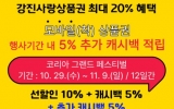 강진 박인석 기자2025. 10.27[뉴스채널]“희망이 되는 소비, 함께 성장하는 경제”란 비전 아래 10개 부처와 3만 개 유통사가 참여하는 대규모 할인 축제인 ‘코리아 그랜드 페스티벌’이 개최된다. 지역상품권뿐만 아니라 온누리상품권, 농․축․수산물, 가전제품, 숙박․관광, 면세점 등 다양한 분야에서 가격 할인 및 쿠폰 발행 혜택을 제공한다. 기간은 오는 29일부터 11월 9일로 12일간 진행되며, 이에 지역경제 활성화를 위해 강진군도 참여한다. 강진군은 모바일(착) 강진사랑상품권의 할인율을 5% 인상해 행사기간에 총 20%(선할인 10% + 캐시백 5% + ...