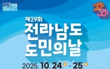 전라남도 박2025. 10.24[전남=뉴스채널] newschner@kakao.com 전라남도가 200만 도민이 함께하는 제29회 전라남도 도민의 날 기념행사를 24일부터 2일간 전남도청 앞 OK도민광장에서 개최한다. 올해 도민의 날 행사는 도청사 이전 20주년을 기념하고, ‘20년의 변화와 30년의 대도약!, 더 위대한 전남’이라는 주제로 도민의 자긍심을 높이며 전남의 미래 비전을 공유하기 위해 다채롭고 감동적인 프로그램으로 준비됐다. 다채로운 기념식과 화려한 드론 라이트쇼 기념식은 식전공연, 도민헌장 낭독, 자랑스러운 전남인 상 시상을 시작으...