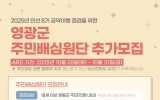 영광 박인석 기자2025. 10.23[뉴스채널]영광군은 민선 8기 공약 이행 사항을 점검할 ‘주민배심원단’을 추가로 모집한다고 24일 밝혔다. 주민배심원단은 군민이 공약 추진 상황을 점검하고 평가해 공약 이행의 공정성과 투명성을 높이는 제도이다. 영광군은 올해 7월 '영광군 공약실천 조례'를 제정하고 군수실 내에 공약 추진 상황판을 설치하는 등 공약의 이행, 점검, 평가까지 전 과정에 걸쳐 체계적인 관리 시스템을 구축하고 있다. 배심원은 한국매니페스토실천본부 주관으로 자동응답시스템(ARS)을 통한 무작위 추첨으로 성별, 연령, 지역을 고려해 15명을 추가...