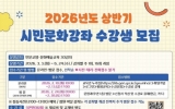 광주광역시 박인석 기자2026. 02.09[AI 호남뉴스]광주시교육청금호평생교육관은 오는 3~6월 ‘2026년 상반기 시민문화강좌’를 운영한다. 이번 시민문화강좌는 시민의 학습 수요를 반영한 배움의 장을 제공하고 지역 내 평생학습 문화를 확산하기 위해 마련됐다. 강좌는 ▲스마트폰 활용 ▲영어회화 ▲컴퓨터 기초 등 인문교양 11개, ▲바이올린 ▲줌바댄스 ▲요가 ▲프랑스자수 등 문화예술 19개 등 2개 분야 30개로 구성됐다. 운영 일정은 오는 3월 3일부터 6월 24일까지 주 1회 2시간씩 총 16회에 걸쳐 본관 평생학습실에서 진행된다. 수강신청은 시민 누구나 가능하...