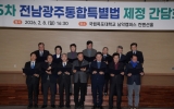 전라남도 박인석 기자2026. 02.09[AI 호남뉴스]강기정 광주광역시장은 8일 ‘전남광주통합특별시 설치 특별법’ 제정과 관련해 중앙부처의 전향적 결단을 강하게 촉구했다. 강기정 시장은 이날 오후 목포대학교 남악캠퍼스에서 열린 ‘전남광주통합특별시 설치를 위한 특별법안 논의를 위한 제5차 시도지사-지역 국회의원 간담회’에 참석해 “지난 6일 중앙부처가 특별법 386개 조문 가운데 119개 조문을 온전히 수용하기 어렵다는 입장을 확인했다”며 “한 달 동안 숨가쁘게 마련한 특별법은 시·도민의 오랜 염원이 담긴 법이자 ‘5극3특’을 통해 지방주도 성장의 대한민국을 만들겠다...